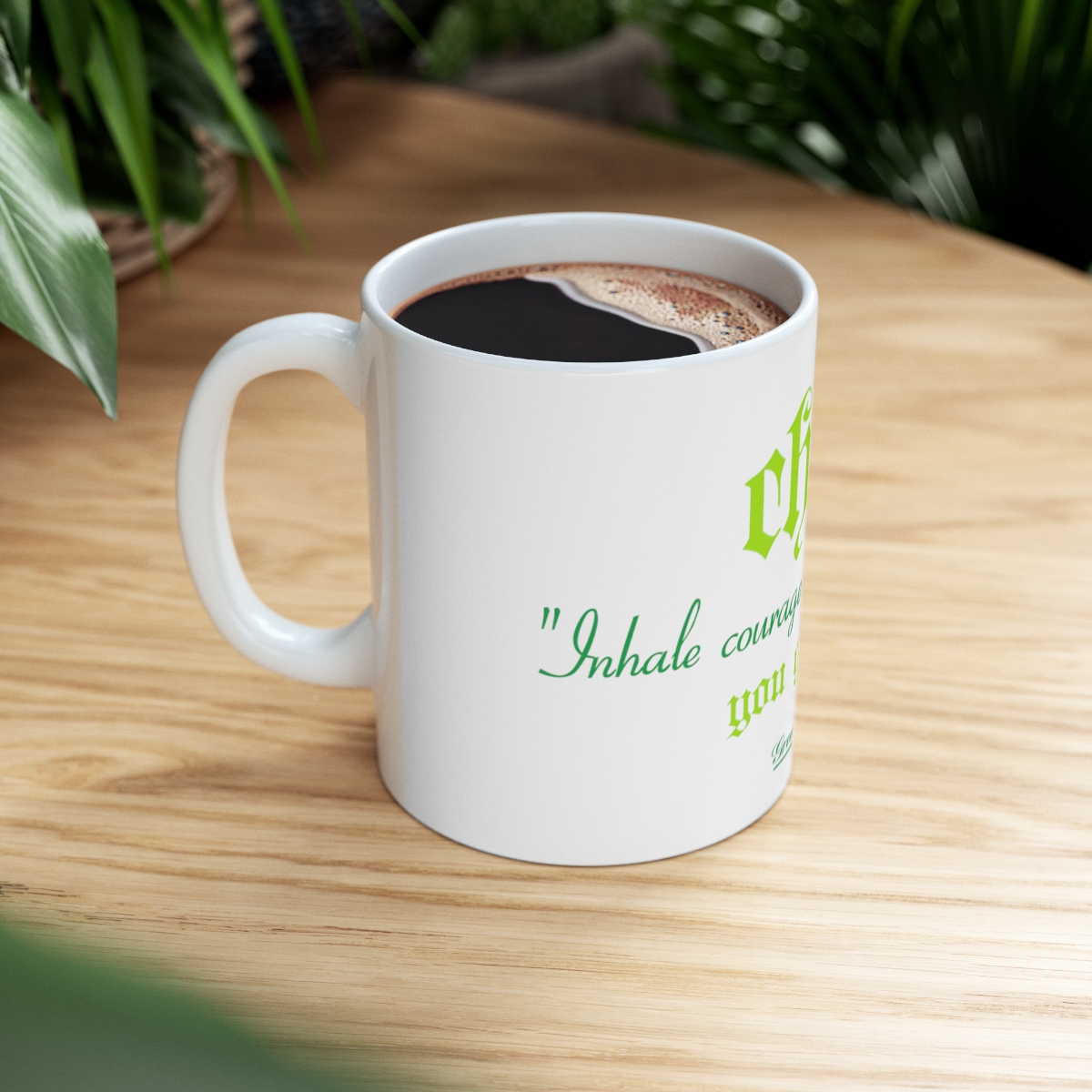 Warm-up with a GH INHALE COURAGE ceramic coffee mug. It’s BPA and Lead-free, microwave & dishwasher-safe, and made of white, durable ceramic in 11-ounce size. Thanks to the advanced printing tech, your designs come to life with incredibly vivid colors – the perfect gift for coffee, tea, and chocolate lovers.